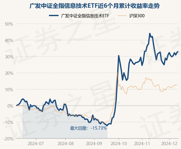 证券之星消息,12月11日,广发中证全指信息技术ETF最新单位净值为0.6409元,累计净值为1.2818元,较前一交易日上涨0.39%。历史数据显示该基金近1个月下跌7.66%,近3个月上涨48.18%,近6个月上涨32.99%,近1年上涨19.24%。该基金近6个月的累计收益率走势如下图: