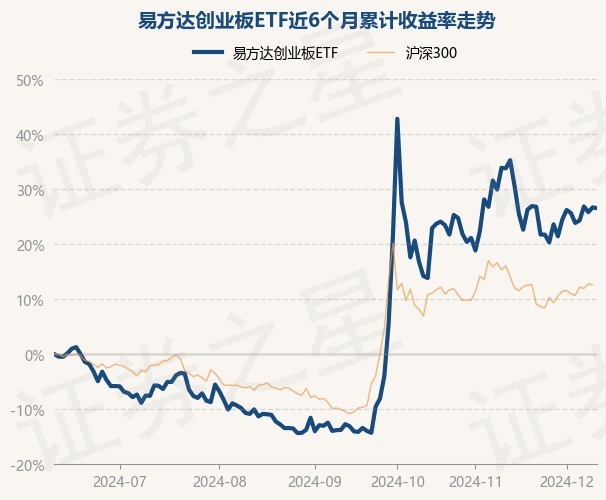 证券之星消息,12月11日,易方达创业板ETF最新单位净值为2.2184元,累计净值为2.5414元,较前一交易日下跌0.11%。历史数据显示该基金近1个月下跌5.48%,近3个月上涨45.0%,近6个月上涨26.57%,近1年上涨18.84%。该基金近6个月的累计收益率走势如下图: