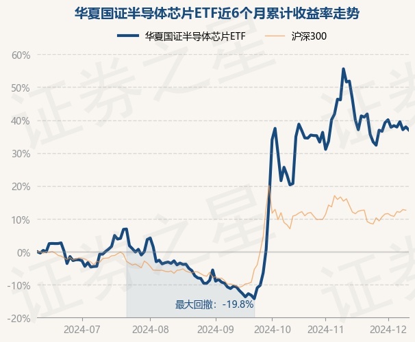 证券之星消息,12月11日,华夏国证半导体芯片ETF最新单位净值为1.1927元,累计净值为1.1927元,较前一交易日下跌0.68%。历史数据显示该基金近1个月下跌11.94%,近3个月上涨53.4%,近6个月上涨37.0%,近1年上涨24.5%。该基金近6个月的累计收益率走势如下图: