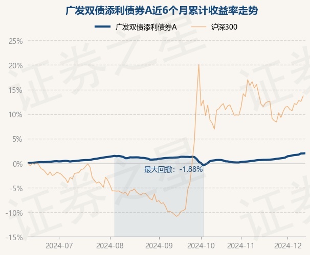 证券之星消息,12月12日,广发双债添利债券A最新单位净值为1.2338元,累计净值为1.6567元,较前一交易日上涨0.04%。历史数据显示该基金近1个月上涨1.43%,近3个月上涨0.86%,近6个月上涨2.02%,近1年上涨6.49%。该基金近6个月的累计收益率走势如下图: