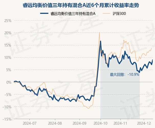 证券之星消息,12月12日,睿远均衡价值三年持有混合A最新单位净值为1.3451元,累计净值为1.3451元,较前一交易日上涨1.75%。历史数据显示该基金近1个月下跌0.61%,近3个月上涨17.33%,近6个月上涨8.91%,近1年上涨18.47%。该基金近6个月的累计收益率走势如下图: