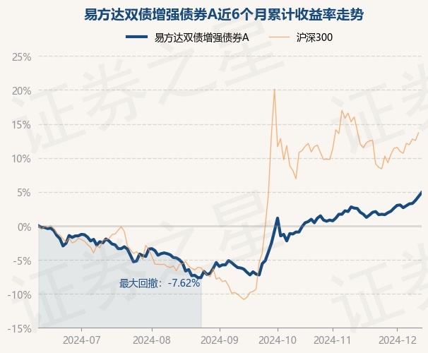 证券之星消息,12月12日,易方达双债增强债券A最新单位净值为1.845元,累计净值为2.355元,较前一交易日上涨0.54%。历史数据显示该基金近1个月上涨2.22%,近3个月上涨12.02%,近6个月上涨4.89%,近1年上涨9.11%。该基金近6个月的累计收益率走势如下图: