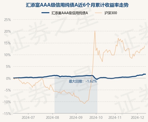 证券之星消息,12月12日,汇添富AAA级信用纯债A最新单位净值为1.1603元,累计净值为1.2333元,较前一交易日上涨0.03%。历史数据显示该基金近1个月上涨1.22%,近3个月上涨0.7%,近6个月上涨1.66%,近1年上涨4.75%。该基金近6个月的累计收益率走势如下图: