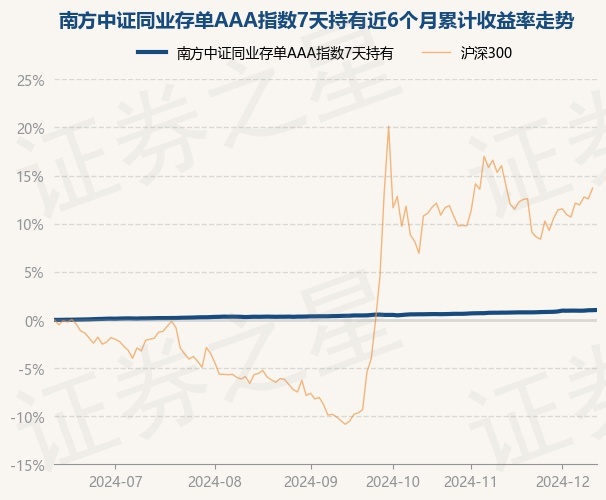 证券之星消息,12月12日,南方中证同业存单AAA指数7天持有最新单位净值为1.0699元,累计净值为1.0699元,较前一交易日上涨0.02%。历史数据显示该基金近1个月上涨0.27%,近3个月上涨0.6%,近6个月上涨1.03%,近1年上涨2.51%。该基金近6个月的累计收益率走势如下图: