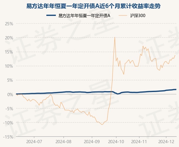 证券之星消息,12月12日,易方达年年恒夏一年定开债A最新单位净值为1.0186元,累计净值为1.2165元,较前一交易日上涨0.02%。历史数据显示该基金近1个月上涨0.76%,近3个月上涨0.85%,近6个月上涨1.62%,近1年上涨4.58%。该基金近6个月的累计收益率走势如下图: