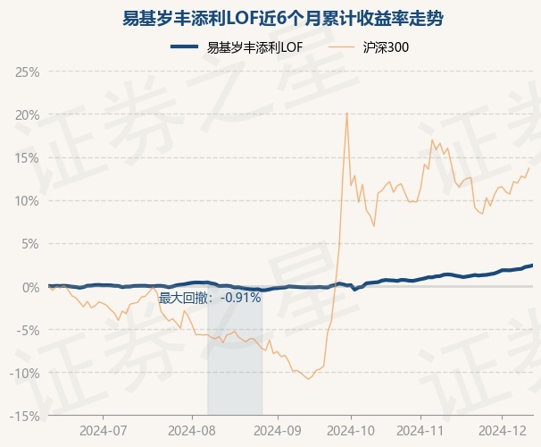 证券之星消息,12月12日,易基岁丰添利LOF最新单位净值为1.688元,累计净值为2.599元,较前一交易日上涨0.11%。历史数据显示该基金近1个月上涨1.04%,近3个月上涨2.55%,近6个月上涨2.4%,近1年上涨6.34%。该基金近6个月的累计收益率走势如下图: