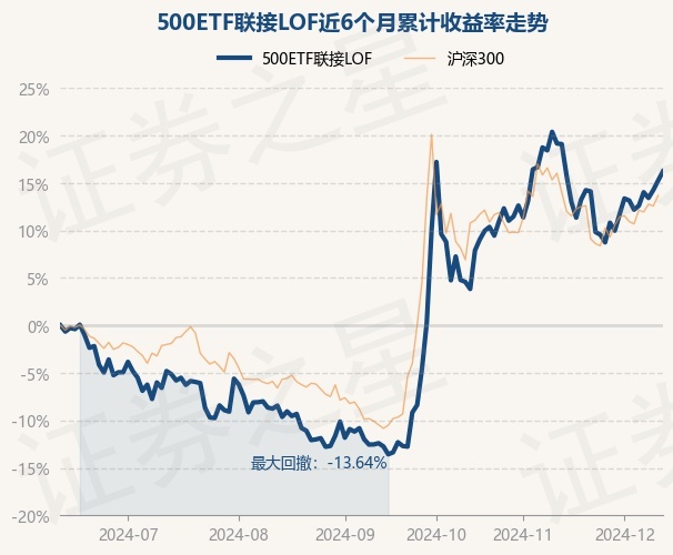 证券之星消息,12月12日,500ETF联接LOF最新单位净值为1.7025元,累计净值为1.8025元,较前一交易日上涨0.84%。历史数据显示该基金近1个月下跌2.46%,近3个月上涨33.2%,近6个月上涨16.23%,近1年上涨10.41%。该基金近6个月的累计收益率走势如下图: