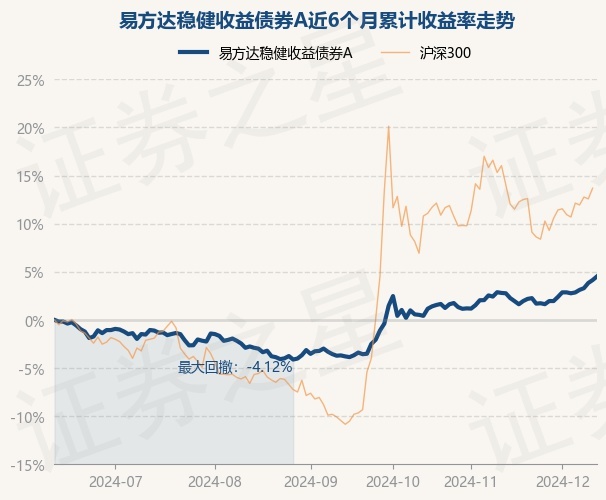 证券之星消息,12月12日,易方达稳健收益债券A最新单位净值为1.4138元,累计净值为2.5054元,较前一交易日上涨0.36%。历史数据显示该基金近1个月上涨1.67%,近3个月上涨8.64%,近6个月上涨4.52%,近1年上涨9.01%。该基金近6个月的累计收益率走势如下图: