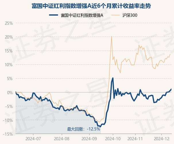 证券之星消息,12月12日,富国中证红利指数增强A最新单位净值为1.051元,累计净值为3.222元,较前一交易日上涨0.48%。历史数据显示该基金近1个月上涨2.54%,近3个月上涨14.99%,近6个月上涨1.06%,近1年上涨10.52%。该基金近6个月的累计收益率走势如下图: