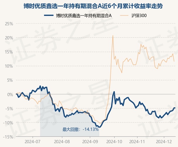 证券之星消息,12月13日,博时优质鑫选一年持有期混合A最新单位净值为0.7682元,累计净值为0.7682元,较前一交易日上涨0.0%。历史数据显示该基金近1个月下跌1.3%,近3个月上涨4.89%,近6个月下跌6.67%,近1年上涨8.18%。该基金近6个月的累计收益率走势如下图: