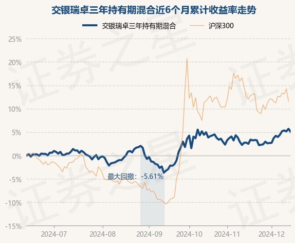 证券之星消息,12月13日,交银瑞卓三年持有期混合最新单位净值为0.9139元,累计净值为0.9139元,较前一交易日下跌0.61%。历史数据显示该基金近1个月上涨2.27%,近3个月上涨8.24%,近6个月上涨5.06%,近1年上涨11.9%。该基金近6个月的累计收益率走势如下图: