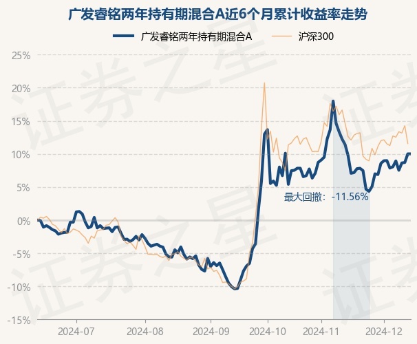 证券之星消息,12月13日,广发睿铭两年持有期混合A最新单位净值为0.9946元,累计净值为0.9946元,较前一交易日上涨0.0%。历史数据显示该基金近1个月下跌4.07%,近3个月上涨19.17%,近6个月上涨6.88%,近1年上涨20.22%。该基金近6个月的累计收益率走势如下图: