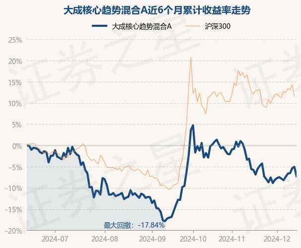 证券之星消息,12月13日,大成核心趋势混合A最新单位净值为0.9275元,累计净值为0.9275元,较前一交易日下跌2.3%。历史数据显示该基金近1个月下跌4.22%,近3个月上涨11.63%,近6个月下跌7.21%,近1年上涨8.31%。该基金近6个月的累计收益率走势如下图:
