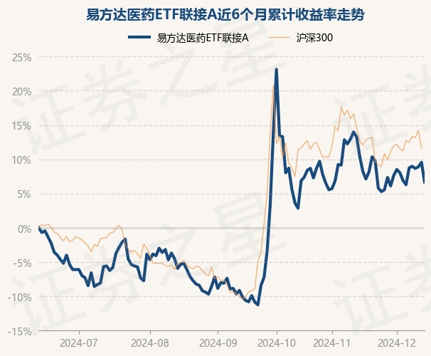 易方达医药ETF联接A为指数型-股票基金,根据最新一期基金季报显示,该基金资产配置:无股票类资产,债券占净值比1.72%,现金占净值比3.21%。基金十大重仓股如下: