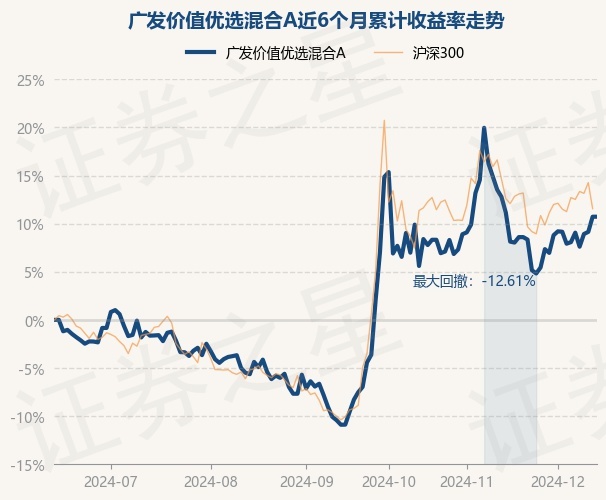 证券之星消息,12月13日,广发价值优选混合A最新单位净值为1.0012元,累计净值为1.0012元,较前一交易日上涨0.0%。历史数据显示该基金近1个月下跌5.01%,近3个月上涨20.21%,近6个月上涨7.13%,近1年上涨21.59%。该基金近6个月的累计收益率走势如下图: