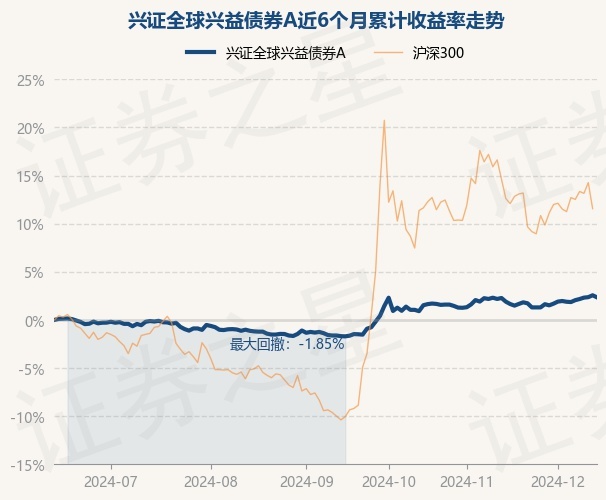 证券之星消息,12月13日,兴证全球兴益债券A最新单位净值为1.0482元,累计净值为1.0482元,较前一交易日下跌0.21%。历史数据显示该基金近1个月上涨0.07%,近3个月上涨4.12%,近6个月上涨2.34%,近1年上涨5.73%。该基金近6个月的累计收益率走势如下图: