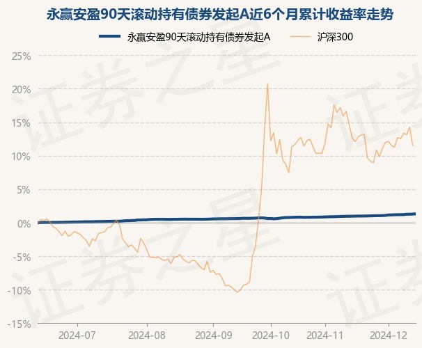 证券之星消息,12月13日,永赢安盈90天滚动持有债券发起A最新单位净值为1.1033元,累计净值为1.1033元,较前一交易日上涨0.05%。历史数据显示该基金近1个月上涨0.36%,近3个月上涨0.7%,近6个月上涨1.32%,近1年上涨3.77%。该基金近6个月的累计收益率走势如下图:
