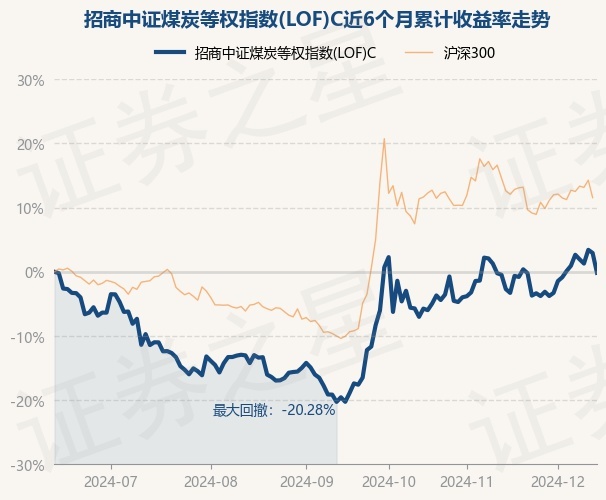 证券之星消息,12月13日,招商中证煤炭等权指数(LOF)C最新单位净值为1.954元,累计净值为1.954元,较前一交易日下跌2.99%。历史数据显示该基金近1个月上涨0.31%,近3个月上涨25.22%,近6个月下跌0.15%,近1年上涨2.87%。该基金近6个月的累计收益率走势如下图: