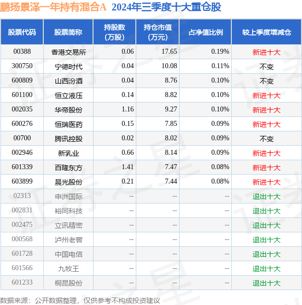 鹏扬景泽一年持有混合A为混合型-偏债基金,根据最新一期基金季报显示,该基金资产配置:股票占净值比3.78%,债券占净值比95.05%,现金占净值比1.97%。基金十大重仓股如下:
