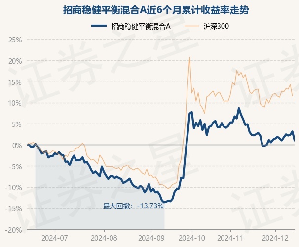 证券之星消息,12月13日,招商稳健平衡混合A最新单位净值为1.2096元,累计净值为1.2096元,较前一交易日下跌2.04%。历史数据显示该基金近1个月下跌3.64%,近3个月上涨16.61%,近6个月上涨1.04%,近1年上涨18.51%。该基金近6个月的累计收益率走势如下图: