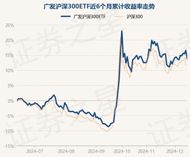 证券之星消息,12月13日,广发沪深300ETF最新单位净值为1.4613元,累计净值为1.4613元,较前一交易日下跌2.36%。历史数据显示该基金近1个月下跌4.3%,近3个月上涨24.64%,近6个月上涨13.81%,近1年上涨19.63%。该基金近6个月的累计收益率走势如下图: