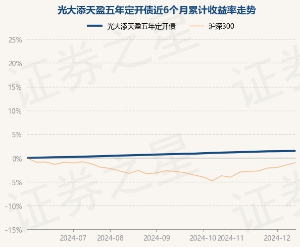 证券之星消息,12月13日,光大添天盈五年定开债最新单位净值为1.0822元,累计净值为1.1432元,较前一交易日上涨0.05%。历史数据显示该基金近1个月上涨0.27%,近3个月上涨0.72%,近6个月上涨1.51%,近1年上涨2.96%。该基金近6个月的累计收益率走势如下图: