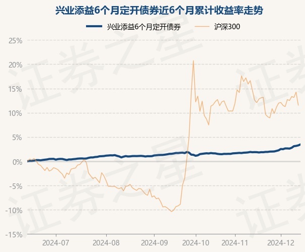 证券之星消息,12月13日,兴业添益6个月定开债券最新单位净值为1.0339元,累计净值为1.0929元,较前一交易日上涨0.18%。历史数据显示该基金近1个月上涨1.57%,近3个月上涨1.83%,近6个月上涨3.46%,近1年上涨6.52%。该基金近6个月的累计收益率走势如下图: