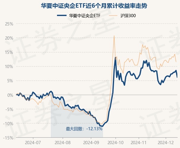 证券之星消息,12月13日,华夏中证央企ETF最新单位净值为1.3507元,累计净值为1.3507元,较前一交易日下跌2.15%。历史数据显示该基金近1个月下跌4.57%,近3个月上涨19.43%,近6个月上涨6.18%,近1年上涨15.24%。该基金近6个月的累计收益率走势如下图: