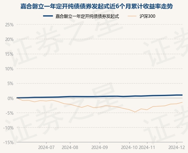 证券之星消息,12月13日,嘉合磐立一年定开纯债债券发起式最新单位净值为1.0313元,累计净值为1.1081元,较前一交易日上涨0.0%。历史数据显示该基金近1个月上涨1.57%,近3个月上涨1.83%,近6个月上涨2.26%,近1年上涨4.78%。该基金近6个月的累计收益率走势如下图: