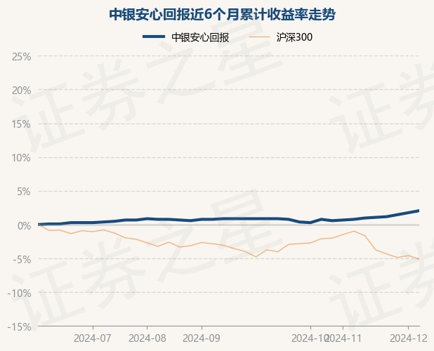 证券之星消息,12月13日,中银安心回报最新单位净值为1.039元,累计净值为1.436元,较前一交易日上涨0.29%。历史数据显示该基金近1个月上涨1.07%,近3个月上涨1.17%,近6个月上涨2.05%,近1年上涨6.09%。该基金近6个月的累计收益率走势如下图: