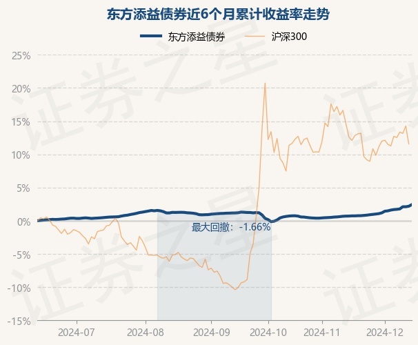 证券之星消息,12月13日,东方添益债券最新单位净值为1.3704元,累计净值为1.5984元,较前一交易日上涨0.23%。历史数据显示该基金近1个月上涨1.71%,近3个月上涨1.2%,近6个月上涨2.42%,近1年上涨6.76%。该基金近6个月的累计收益率走势如下图: