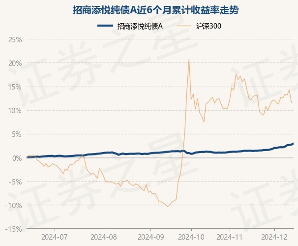 证券之星消息,12月13日,招商添悦纯债A最新单位净值为1.0512元,累计净值为1.253元,较前一交易日上涨0.21%。历史数据显示该基金近1个月上涨1.53%,近3个月上涨1.68%,近6个月上涨2.92%,近1年上涨5.67%。该基金近6个月的累计收益率走势如下图: