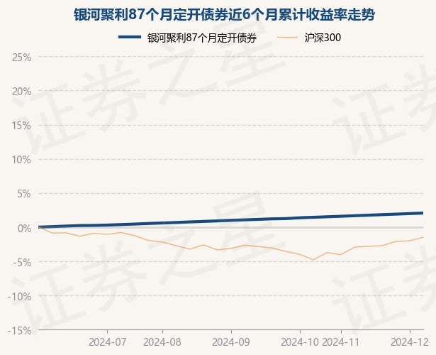 证券之星消息,12月13日,银河聚利87个月定开债券最新单位净值为1.1113元,累计净值为1.1603元,较前一交易日上涨0.07%。历史数据显示该基金近1个月上涨0.38%,近3个月上涨0.98%,近6个月上涨2.06%,近1年上涨4.01%。该基金近6个月的累计收益率走势如下图: