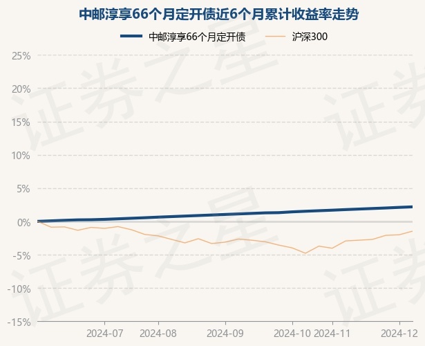 证券之星消息,12月13日,中邮淳享66个月定开债最新单位净值为1.0187元,累计净值为1.1539元,较前一交易日上涨0.08%。历史数据显示该基金近1个月上涨0.4%,近3个月上涨1.05%,近6个月上涨2.18%,近1年上涨4.18%。该基金近6个月的累计收益率走势如下图: