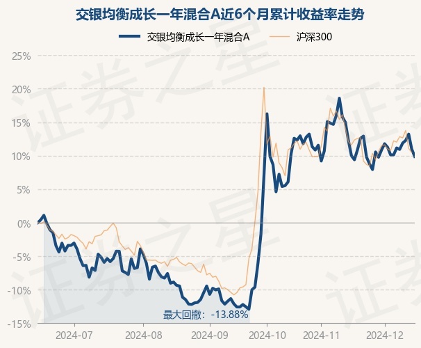 证券之星消息,12月16日,交银均衡成长一年混合A最新单位净值为0.8121元,累计净值为0.8751元,较前一交易日下跌1.0%。历史数据显示该基金近1个月下跌0.11%,近3个月上涨25.69%,近6个月上涨9.88%,近1年上涨3.86%。该基金近6个月的累计收益率走势如下图: