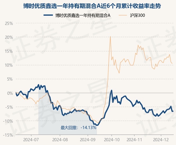 证券之星消息,12月16日,博时优质鑫选一年持有期混合A最新单位净值为0.7661元,累计净值为0.7661元,较前一交易日上涨0.0%。历史数据显示该基金近1个月上涨0.22%,近3个月上涨4.6%,近6个月下跌6.88%,近1年上涨8.05%。该基金近6个月的累计收益率走势如下图: