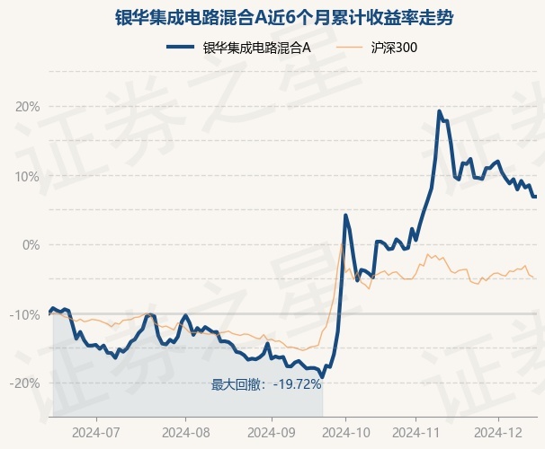 证券之星消息,12月16日,银华集成电路混合A最新单位净值为1.0341元,累计净值为1.0341元,较前一交易日上涨0.0%。历史数据显示该基金近1个月下跌6.93%,近3个月上涨54.5%,近6个月上涨29.8%,近1年上涨13.28%。该基金近6个月的累计收益率走势如下图: