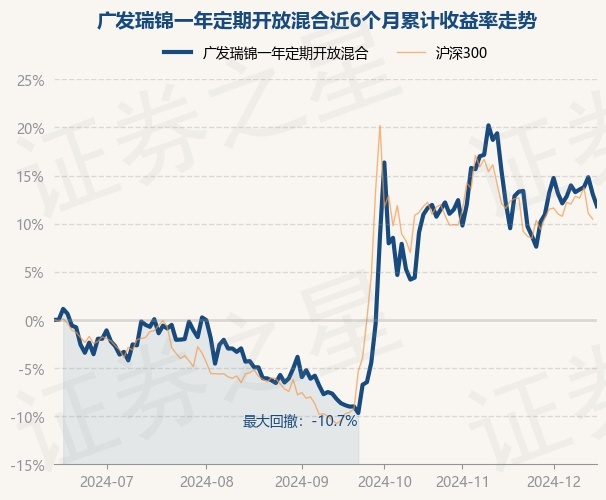 广发瑞锦一年定期开放混合为混合型-偏股基金,根据最新一期基金季报显示,该基金资产配置:股票占净值比87.11%,债券占净值比3.36%,现金占净值比9.68%。基金十大重仓股如下: