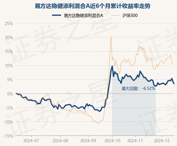 证券之星消息,12月16日,易方达稳健添利混合A最新单位净值为0.9549元,累计净值为0.9549元,较前一交易日下跌0.6%。历史数据显示该基金近1个月下跌1.1%,近3个月上涨10.42%,近6个月上涨3.39%,近1年上涨8.5%。该基金近6个月的累计收益率走势如下图: