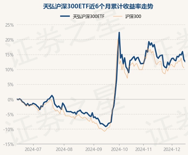 证券之星消息,12月16日,天弘沪深300ETF最新单位净值为1.0955元,累计净值为1.0955元,较前一交易日下跌0.55%。历史数据显示该基金近1个月下跌1.43%,近3个月上涨23.98%,近6个月上涨12.6%,近1年上涨19.92%。该基金近6个月的累计收益率走势如下图: