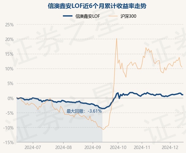 证券之星消息,12月16日,信澳鑫安LOF最新单位净值为1.012元,累计净值为1.39元,较前一交易日上涨0.0%。历史数据显示该基金近1个月上涨0.22%,近3个月上涨4.86%,近6个月上涨1.07%,近1年上涨5.8%。该基金近6个月的累计收益率走势如下图: