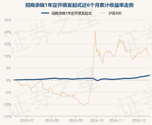 证券之星消息,12月16日,招商添锦1年定开债发起式最新单位净值为1.0661元,累计净值为1.1456元,较前一交易日上涨0.15%。历史数据显示该基金近1个月上涨1.34%,近3个月上涨1.36%,近6个月上涨2.01%,近1年上涨4.92%。该基金近6个月的累计收益率走势如下图: