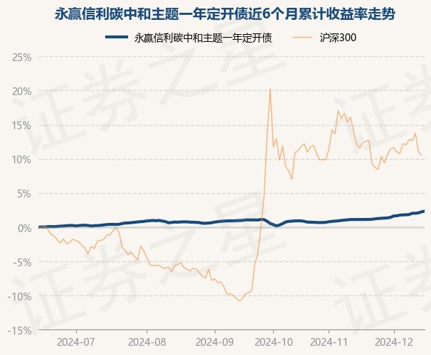 永赢信利碳中和主题一年定开债为债券型-长债基金,根据最新一期基金季报显示,该基金资产配置:无股票类资产,债券占净值比157.37%,现金占净值比1.95%。