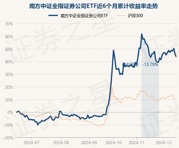 证券之星消息,12月16日,南方中证全指证券公司ETF最新单位净值为1.1881元,累计净值为1.1881元,较前一交易日下跌1.48%。历史数据显示该基金近1个月下跌0.94%,近3个月上涨48.61%,近6个月上涨43.65%,近1年上涨29.75%。该基金近6个月的累计收益率走势如下图: