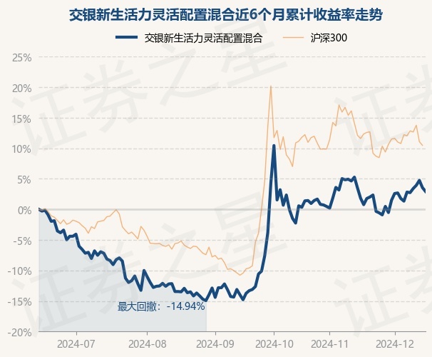 证券之星消息,12月16日,交银新生活力灵活配置混合最新单位净值为2.149元,累计净值为2.149元,较前一交易日下跌0.6%。历史数据显示该基金近1个月上涨1.08%,近3个月上涨20.8%,近6个月上涨2.92%,近1年上涨4.73%。该基金近6个月的累计收益率走势如下图: