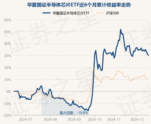 证券之星消息,12月17日,华夏国证半导体芯片ETF最新单位净值为1.1589元,累计净值为1.1589元,较前一交易日下跌0.74%。历史数据显示该基金近1个月下跌4.95%,近3个月上涨52.45%,近6个月上涨29.91%,近1年上涨23.87%。该基金近6个月的累计收益率走势如下图: