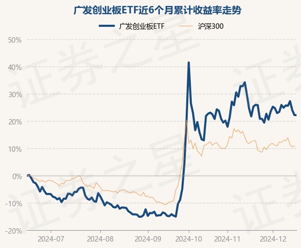 证券之星消息,12月17日,广发创业板ETF最新单位净值为1.3185元,累计净值为1.3185元,较前一交易日下跌0.03%。历史数据显示该基金近1个月下跌1.94%,近3个月上涨43.32%,近6个月上涨22.21%,近1年上涨20.49%。该基金近6个月的累计收益率走势如下图:
