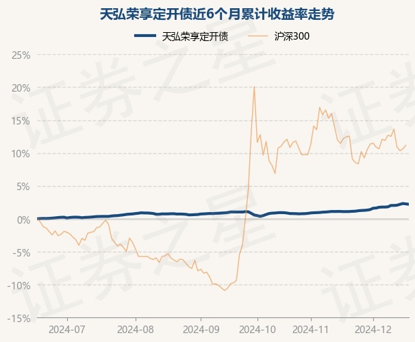 证券之星消息,12月18日,天弘荣享定开债最新单位净值为1.0408元,累计净值为1.273元,较前一交易日下跌0.06%。历史数据显示该基金近1个月上涨1.1%,近3个月上涨1.16%,近6个月上涨2.21%,近1年上涨5.72%。该基金近6个月的累计收益率走势如下图: