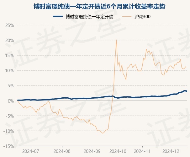 证券之星消息,12月18日,博时富璟纯债一年定开债最新单位净值为1.0473元,累计净值为1.1126元,较前一交易日下跌0.12%。历史数据显示该基金近1个月上涨3.54%,近3个月上涨3.54%,近6个月上涨4.89%,近1年上涨7.56%。该基金近6个月的累计收益率走势如下图: