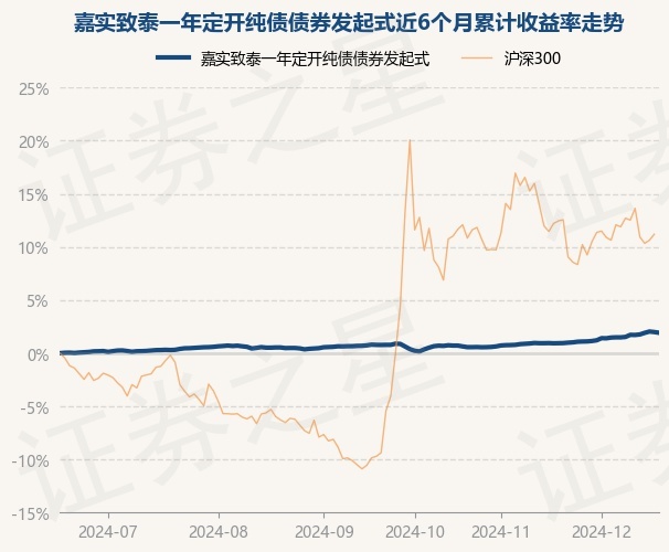证券之星消息,12月18日,嘉实致泰一年定开纯债债券发起式最新单位净值为1.04元,累计净值为1.0796元,较前一交易日下跌0.07%。历史数据显示该基金近1个月上涨0.98%,近3个月上涨1.11%,近6个月上涨1.92%,近1年上涨4.83%。该基金近6个月的累计收益率走势如下图: